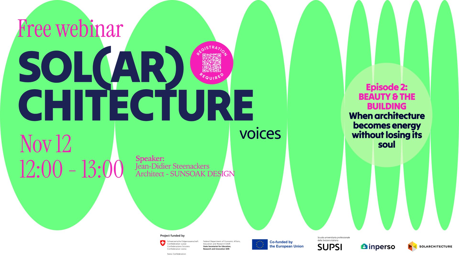 The new initiative SOL(AR)CHITECTURE – voices, launched by SUPSI within the European project INPERSO, introduces a fresh format to explore this transformation: short, dynamic, and interactive sessions where knowledge turns into vision and the experience of pioneers becomes a tool to imagine the future.